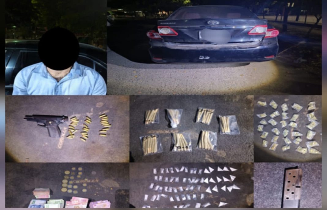 CULIACÁN, Sin.- Personal del Ejército Mexicano, en coordinación con la Secretaría de Seguridad Pública del Estado, a través de la Policía Estatal Preventiva, la Guardia Nacional, la Secretaría de Marina, la Secretaría de Seguridad y Protección Ciudadana, la Fiscalía General de la República y la Fiscalía General del Estado, detuvo a un hombre armado en posesión de distintas sustancias ilícitas y numerario.