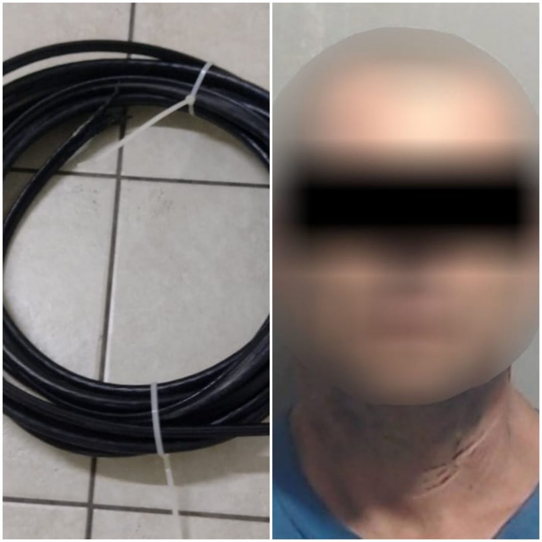 Al arribar al lugar, observaron a un sujeto sentado debajo del árbol, y a simple vista un rollo de cable de color negro; la persona, al observar a los agentes tomó el rollo e intentó ocultarlo entre la maleza y corrió pero fue alcanzado.