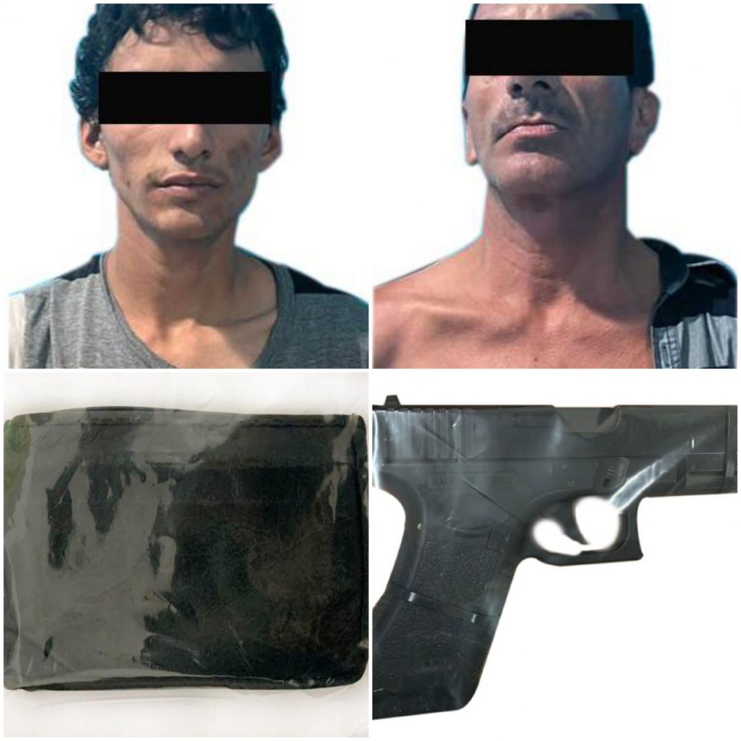 El primero dijo llamarse Ángel Manuel “N” de 47 años de edad con domicilio en ese mismo asentamiento, a quien le localizaron fajada en la cintura una pistola de diábolos.