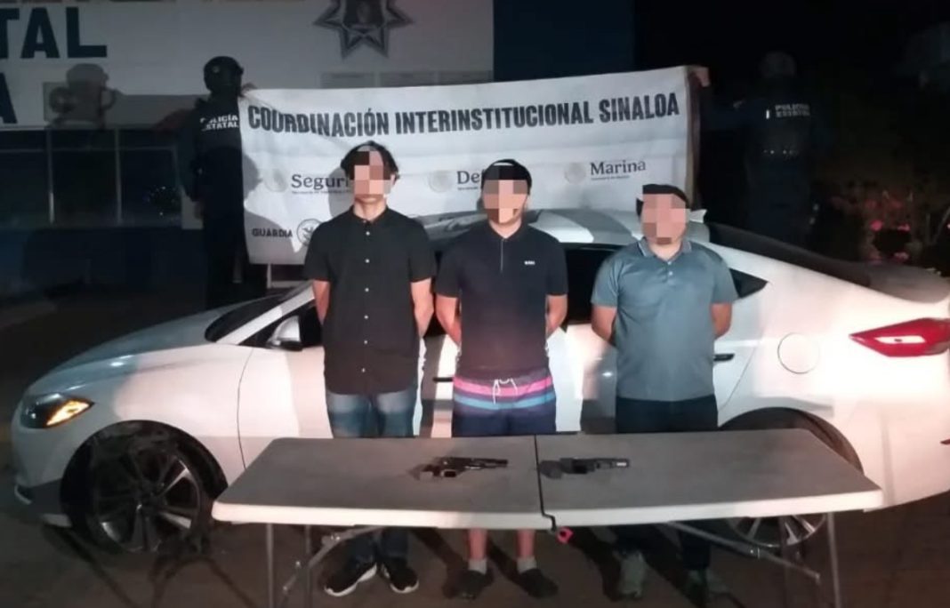 CULIACÁN, Sin.- Tras un operativo de seguridad, elementos de la Secretaría de Seguridad Pública de Sinaloa, a través de la Policía Estatal Preventiva, en coordinación con el Ejército Mexicano, la Guardia Nacional, la Secretaría de Marina, la Secretaría de Seguridad y Protección Ciudadana, y la Fiscalía General de la República, así como la Fiscalía General del Estado, detuvieron a tres personas de sexo masculino y aseguraron un vehículo, además de dos armas de fuego en la ciudad capital.