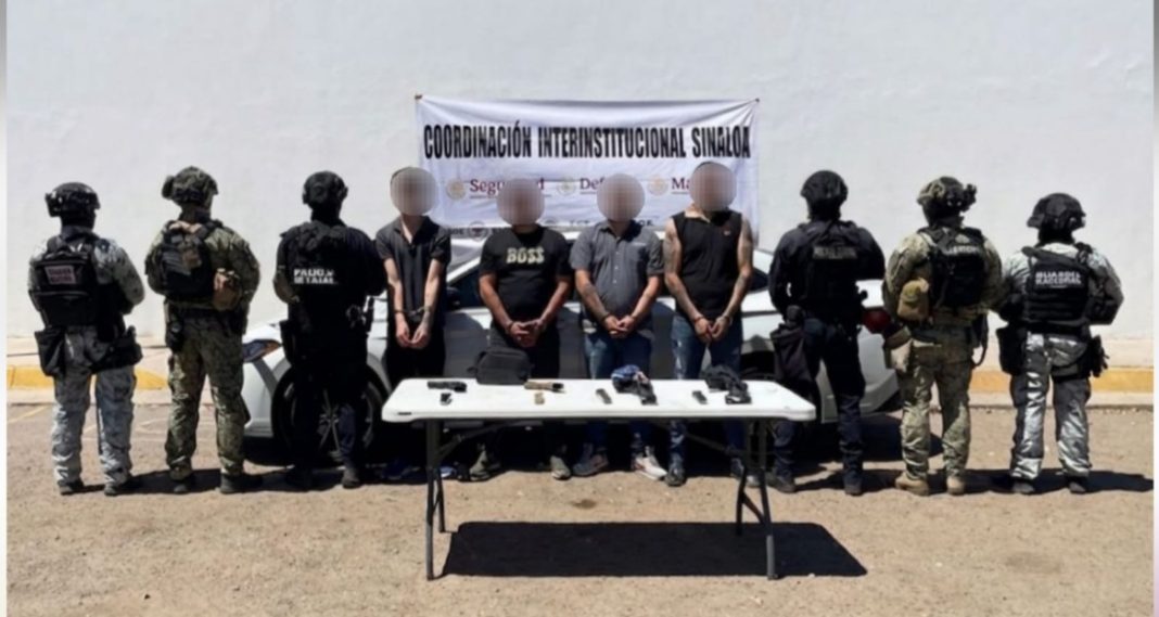 CULIACÁN, Sin.- Personal de la Secretaría de Seguridad Pública del Estado, a través de la Policía Estatal Preventiva, en coordinación con el Ejército Mexicano, la Guardia Nacional, la Secretaría de Marina, la Secretaría de Seguridad y Protección Ciudadana, la Fiscalía General de la República y la Fiscalía General del Estado, detuvo este domingo 19 de abril, en la capital del estado, a cuatro personas, a quienes les aseguraron armas, cargadores, cartuchos y un vehículo con reporte de robo.