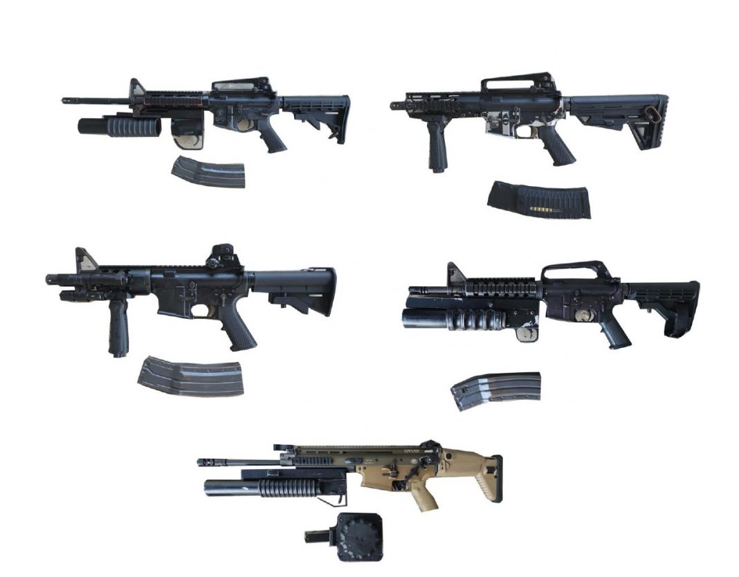 En el lugar fueron ubicadas 20 armas de fuego, de las cuales 9 son cortas y 11 largas, entre ellas un fusil y una ametralladora, además de 3 granadas calibre 40 milímetros; cabe señalar que, de las armas largas, tres estaban equipadas con aditamentos lanza granadas.