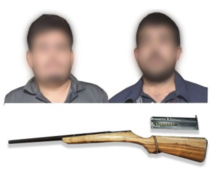 Al detenerse la unidad descendieron dos hombres, uno de los cuales intentó darse a la fuga e ingresar a un domicilio, momento en el cual los policías observaron en el asfalto un cargador para arma; asimismo se les aseguró un arma de fuego tipo rifle.