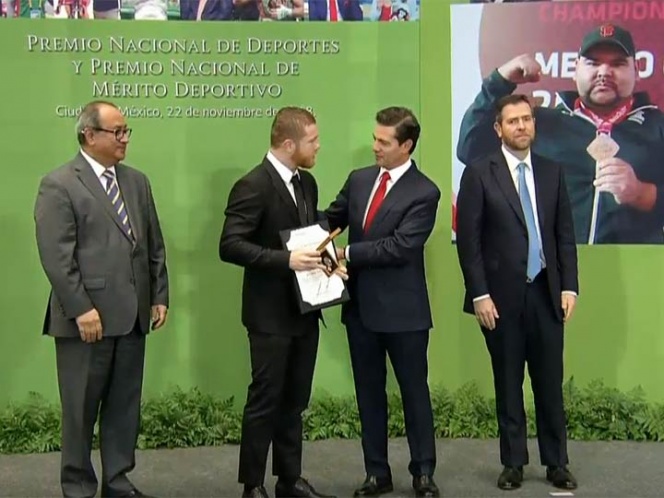 CIUDAD DE MÉXICO.- Saúl “Canelo” Álvarez recibió el Premio Nacional de Deportes 2018 en manos del presidente Enrique Peña Nieto en la Residencia Oficial de Los Pinos.