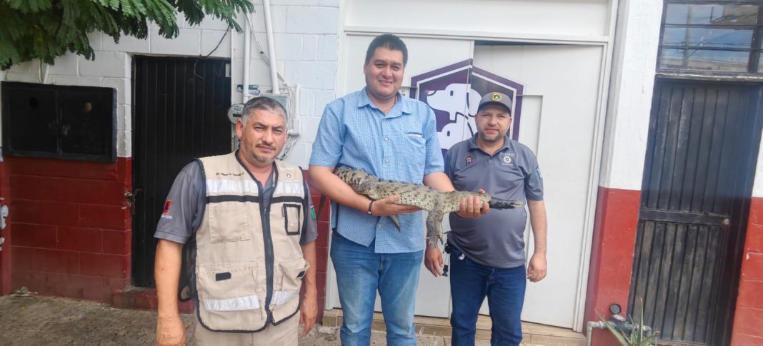 De inmediato personal de Protección Civil y Grupo Voluntario Costa Rica acudieron al llamado; en el lugar caminaba plácidamente un cocodrilo joven de aproximadamente un metro de largo.