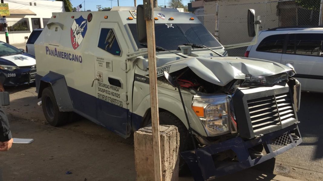 CULIACÁN, Sin.- Un camión blindado de una empresa de valores que circulaba a exceso de velocidad por una calle de la colonia Antonio Toledo Corro en Culiacán se impactó contra una camioneta tipo Ranger modelo antiguo en la cual viajaba un adulto mayor.