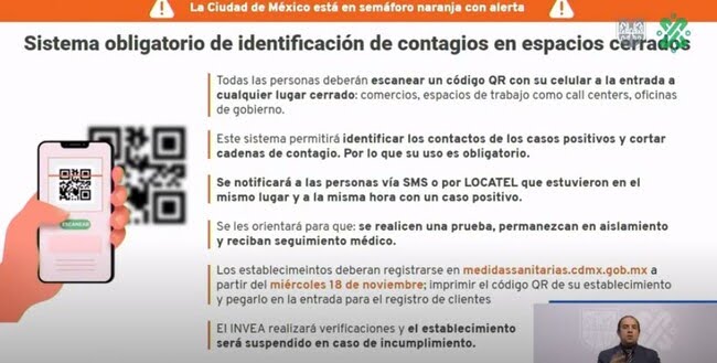 CIUDAD DE MÉXICO.- El gobierno de la Ciudad de México presentó este viernes un nuevo sistema para detectar posibles contagios de COVID-19 que utiliza códigos QR, además de nuevas restricciones de horario a cines, museos y gimnasios.