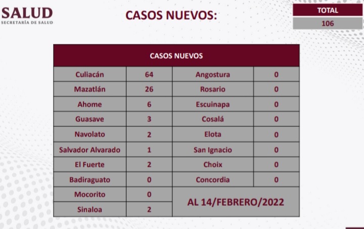 Del 20 de enero al 13 de febrero los casos nuevos suman 43,548.