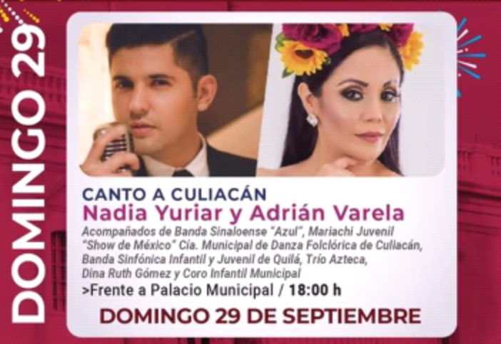 El cierre del Festival Cultural Culiacán 2019 concluirá con un concierto ofrecido por Adrián Varela y Nadia Yuriar acompañados de la Banda Sinaoense “Azul” en punto de las 18:00 horas frente al Palacio Municipal.