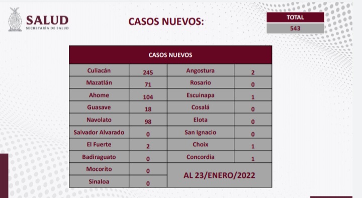 El número de nuevos contagios llegó a los 543, de los cuales 245 se presentaron en Culiacán