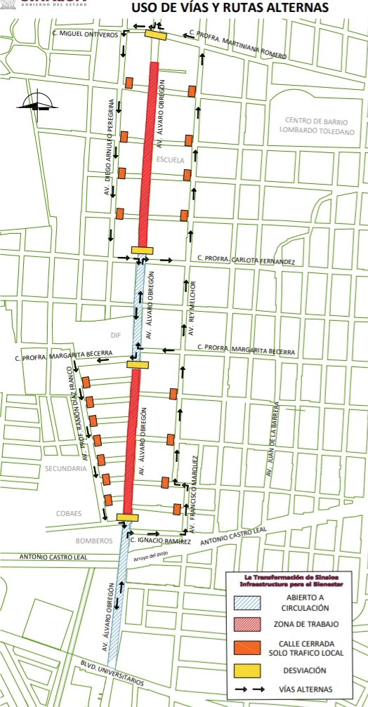 Por motivo de éstas obras habrá cierres parciales de la avenida Álvaro Obregón, iniciando primeramente del DIF a la estación de bomberos, dejando abierto para circulación de la avenida Universitarios al DIF, cerrando también de la calle Ignacio Ramírez a la calle profesora Margarita Becerra, utilizando las calles laterales para tránsito local y camiones urbanos, mientras que todos los camiones de carga y el tráfico pesado, deberán pasar por La Pitahayita.