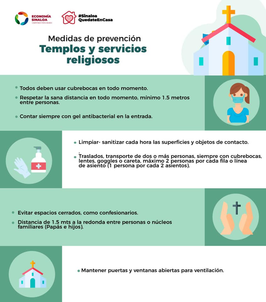 CULIACÁN, Sin.- Al reactivar la economía gradualmente del estado, la Secretaría de Salud emitió lineamientos para no descuidar la salud de los sinaloenses en los templos y sitios religiosos.