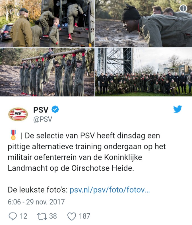Según explica el PSV en su web oficial, esta sesión de preparación sirvió para instruir a los futbolistas en los valores esenciales del ejército.