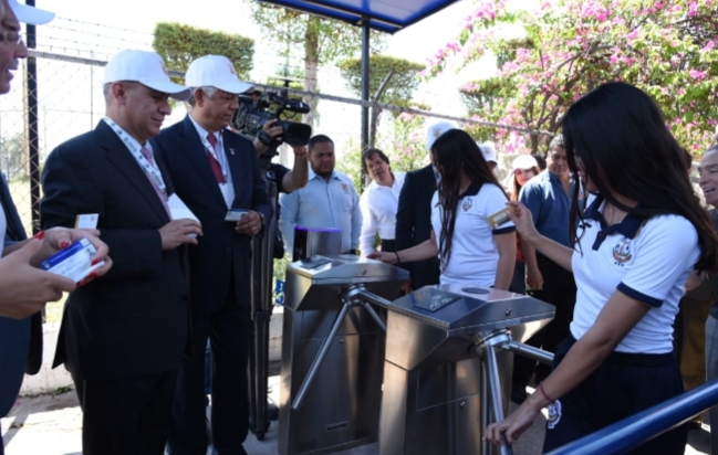 El rector, acompañado del Secretario de Seguridad Pública de gobierno del estado, Cristóbal Castañeda Camarillo; del Fiscal General de Sinaloa, Juan José Ríos Estavillo y autoridades universitarias probaron el sistema de acceso principal a CU donde un lector especial activa el torniquete para el ingreso peatonal, incluso para el acceso a personas con discapacidad.