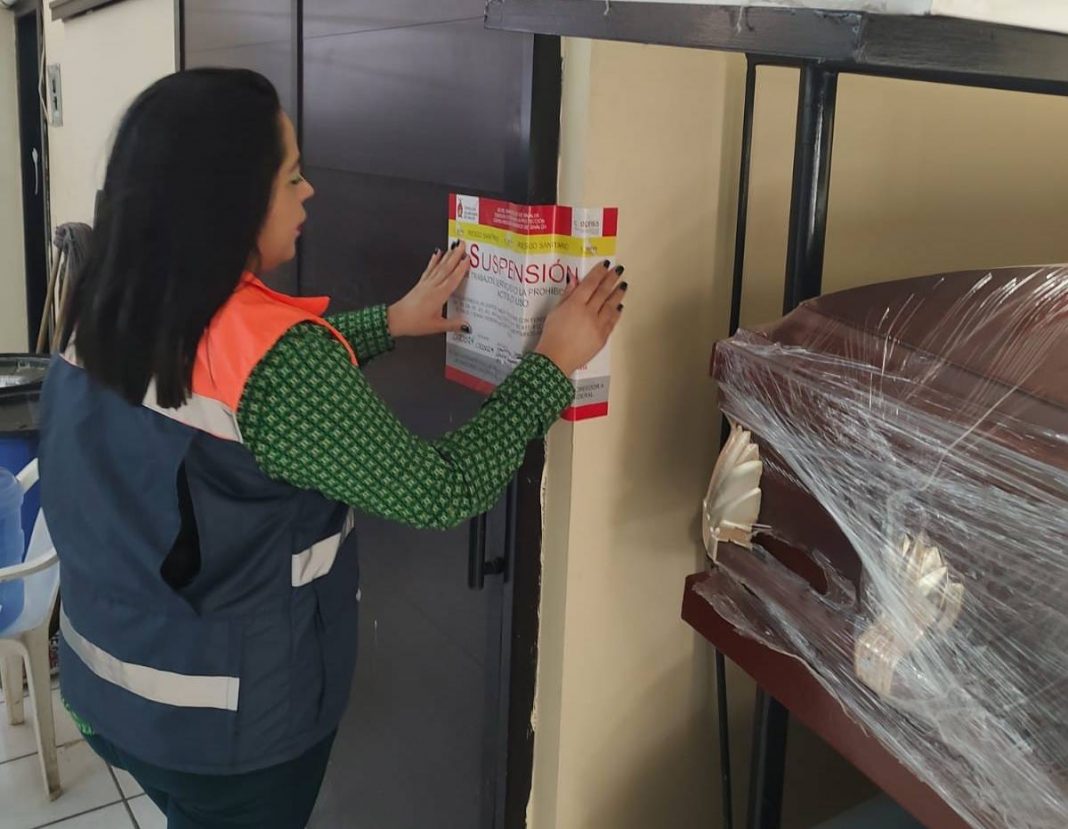 “en la visita sanitaria nos dimos a conocer que no cuentan con un contrato con una empresa recolectora de RPBI (Residuos Peligrosos BioInfecciosos), tampoco cuentan con perfiles de los embalsamadores, no cuentan con documentación legal importante y necesaria para el acta de verificación, entonces vamos a proceder a suspender los trabajos de esta funeraria de forma indefinida”.
