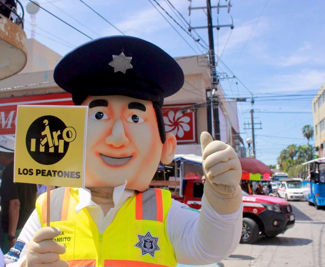 MAZATLÁN, Sin.– Con la activación de la campaña “Camina Seguro”, la Coordinación de Educación Vial de la subdirección de Tránsito y la Secretaría de Seguridad Pública Municipal, con apoyo del Instituto Municipal de la Juventud (IMJU) y la presencia del Secretario del Ayuntamiento, Moisés Ríos Pérez, llevaron a cabo este domingo una actividad preventiva en las principales vialidades del Centro de Mazatlán, para conmemorar el Día Internacional del Peatón.