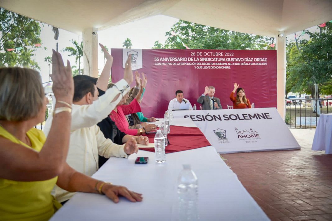 EL CARRIZO, Sin.- En el marco del 55 Aniversario de la Fundación de la sindicatura Gustavo Díaz Ordaz, el Ayuntamiento de Ahome realizó traslado de poderes municipales y Sesión Solemne de Cabildo en la Plazuela de “El Carrizo”.