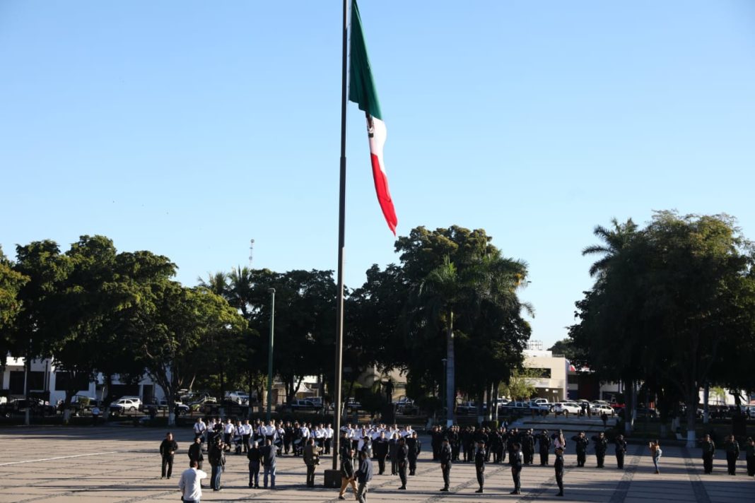 CULIACÁN, Sin.- Para conmemorar el 106 aniversario del Día del Ejército Mexicano, representantes de los tres Poderes del Estado, junto con autoridades civiles y militares, encabezaron el izamiento de la bandera nacional a toda asta en la explanada de Palacio de Gobierno.