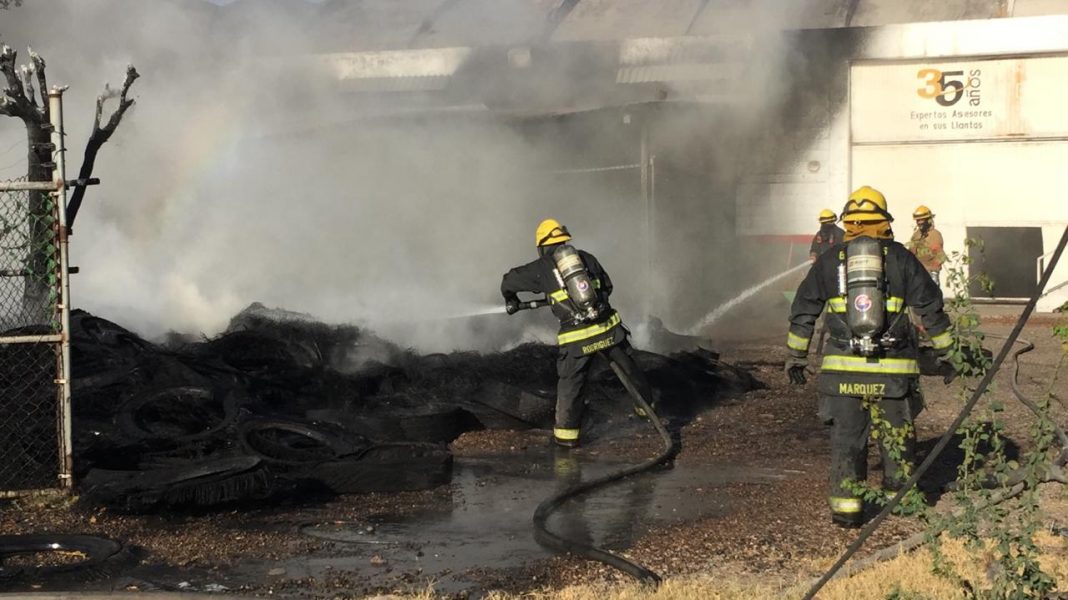 Casi controlado antes de las 09:00 horas el siniestro consumió al menos 100 neumáticos en el sitio usado como bodega para llantas.