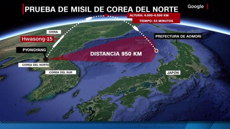 El misil lanzado el martes por Corea del Norte tiene capacidad para alcanzar cualquier punto de Estados Unidos