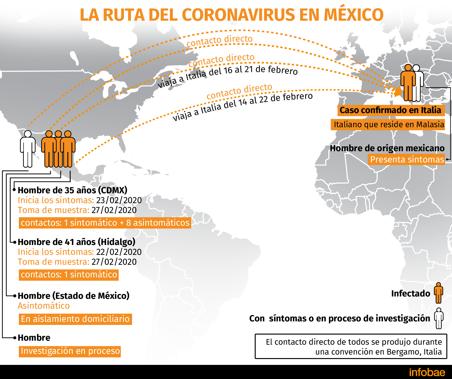 Originario de Hidalgo, el hombre estuvo en una convención en Bergamo, Italia, uno de los focos de la enfermedad, desde el 16 hasta el 21 de febrero. Se sospecha que allí surgió el contagio.