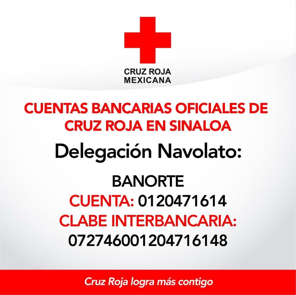 Cruz Roja Navolato dispone de una cuenta bancaria para donativos de particulares y de los gastos que se generan durante el año.