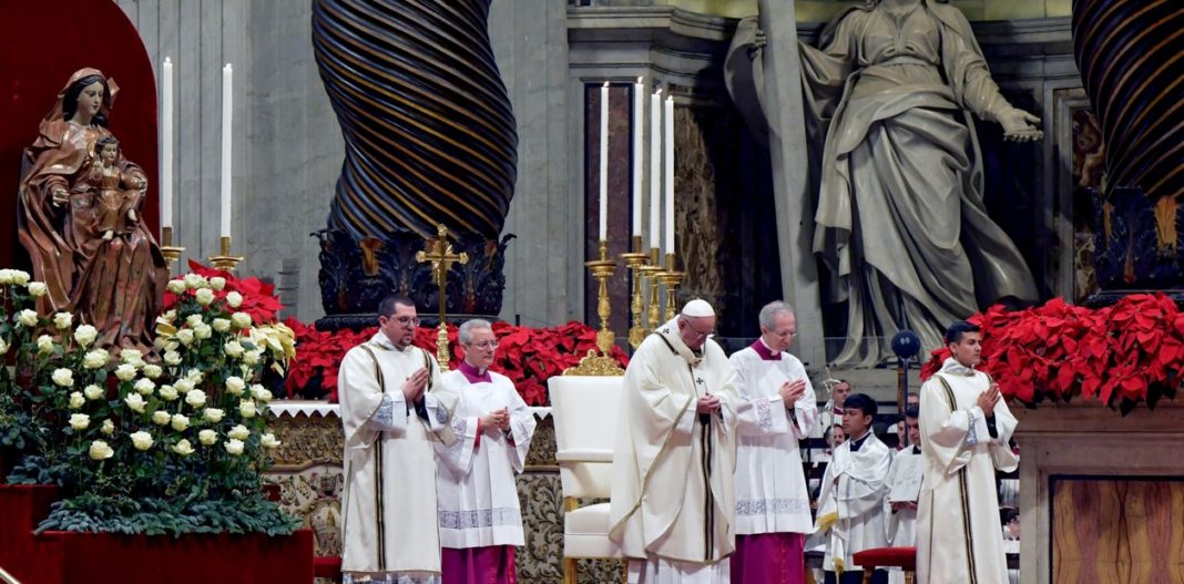 “Una insaciable codicia atraviesa la historia humana”, lamentó Francisco durante esta misa en la que los católicos conmemoran el nacimiento de Dios.