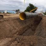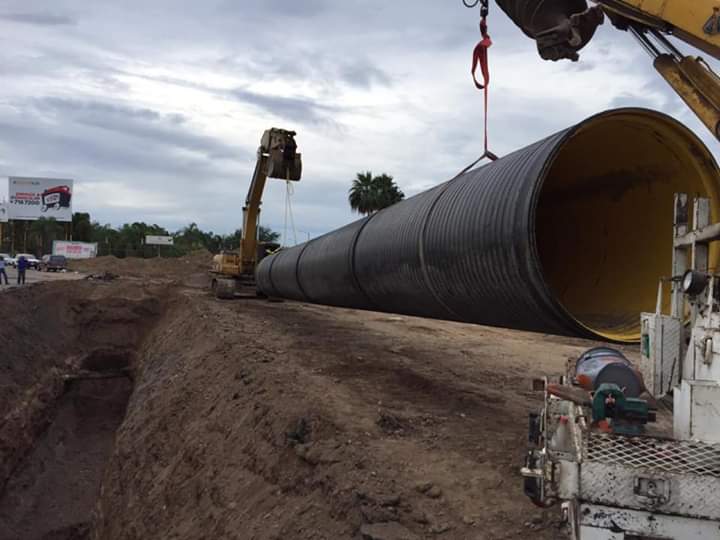 CULIACÁN, Sin.- Se culminó la instalación del primer tramo de tubería en el punto del cruce del Emisor Rubí por el bulevar Pedro Infante en la sustitución del colector de aguas negras.
