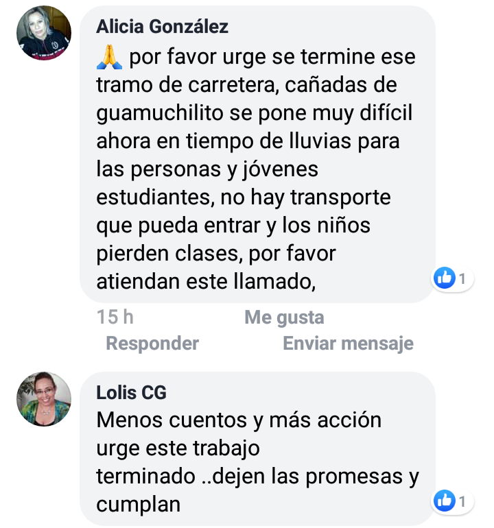 A través de redes sociales los ciudadanos se volcaron de nuevo en llamado al Ayuntamiento de Navolato para que cumplan con una solución inmediata y finalmente pavimenten la única ruta que sirve como salida de emergencia en caso de desastres.