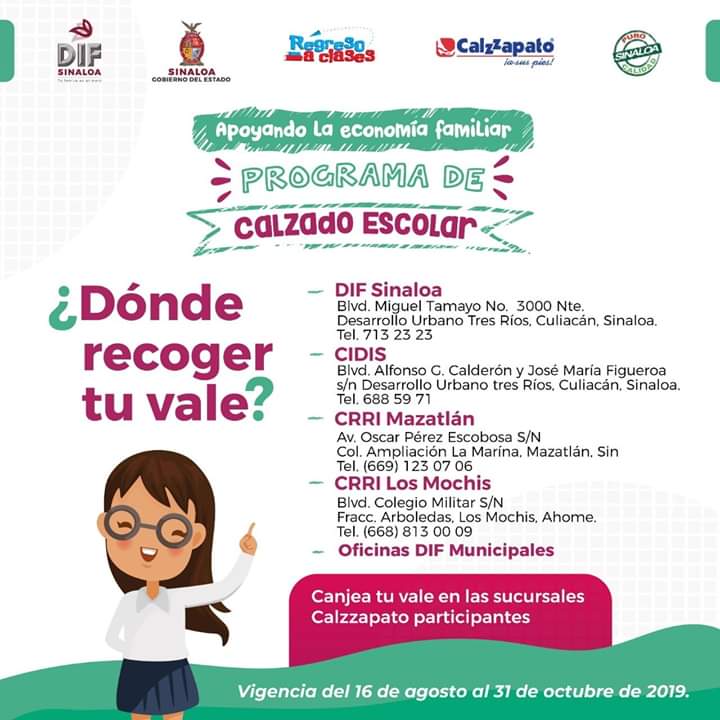 El vale será canjeable a partir del 16 de agosto en las sucursales de Calzzapato de los diferentes municipios. Los lugares que no cuenten con estas zapaterías deberán acudir a los municipios vecinos donde si existan.
