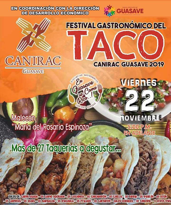 GUASAVE, Sin.- Para este viernes se prepara el Festival Gastronómico del Taco 2019 que organiza Canirac Guasave en coordinación con la Dirección de Desarrollo Económico del Ayuntamiento local.
