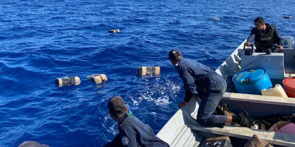 CHILPANCINGO, Gro.- Elementos de la Secretaría de Marina (Semar) decomisaron más de 2 toneladas de cocaína y 500 litros de combustible en Acapulco, Guerrero.