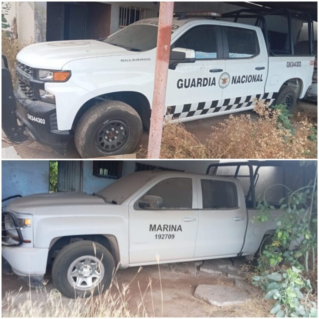 Una de las patrullas clonadas era réplica exacta de la Guardia Nacional y otra de la Secretaría de Marina, las cuales junto a los otros cinco vehículos con reporte de robo, estaban en una domicilio particular de “El Tamarindo”.
