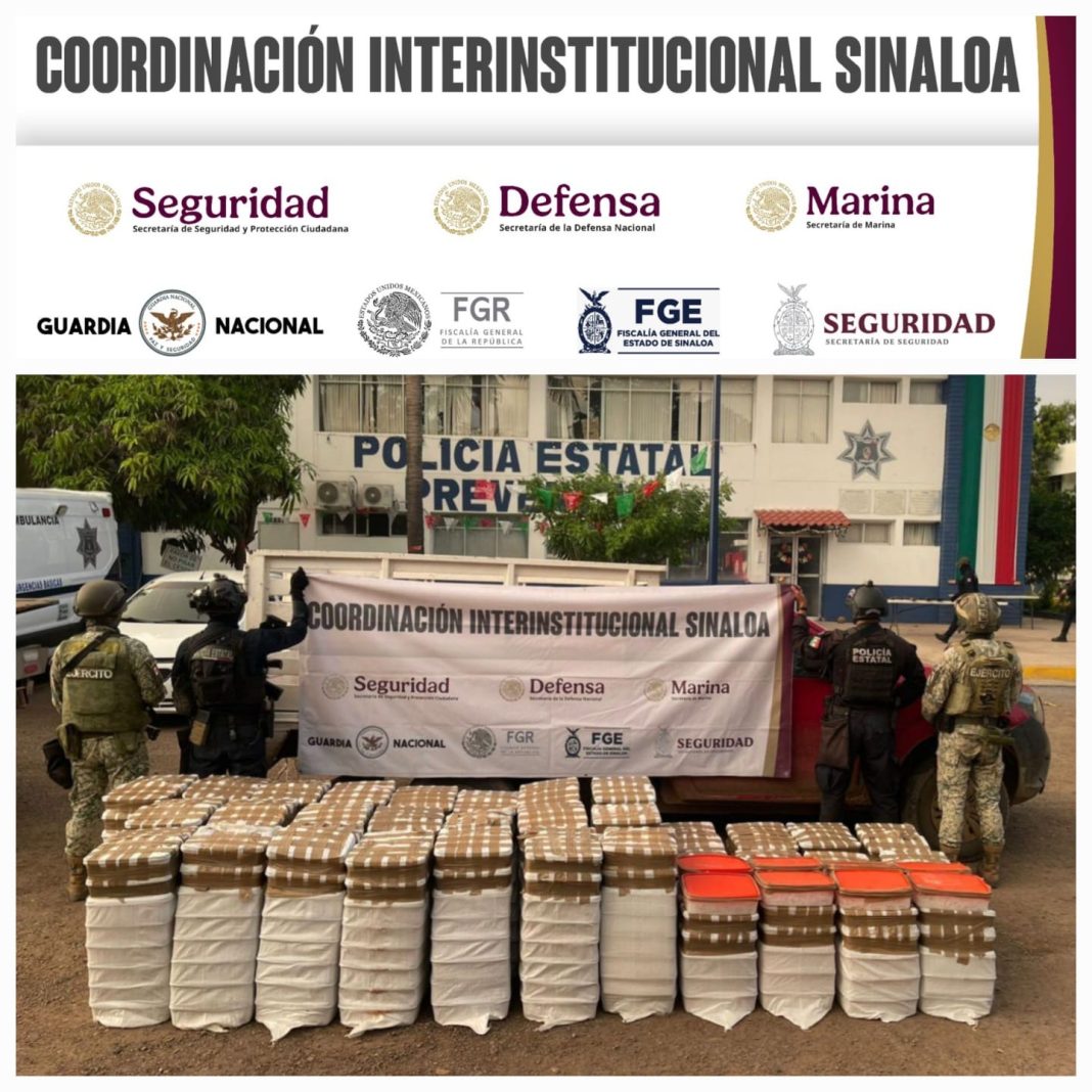 CULIACÁN, Sin.- Elementos del Ejército Mexicano y de la Secretaría de Seguridad Pública del Estado, a través de la Policía Estatal Preventiva, en coordinación con la Guardia Nacional, la Secretaría de Marina, la Secretaría de Seguridad y Protección Ciudadana, la Fiscalía General de la República y la Fiscalía General del Estado, localizaron una camioneta con reporte de robo y, en su interior, paquetes con una sustancia con las características de la metanfetamina.
