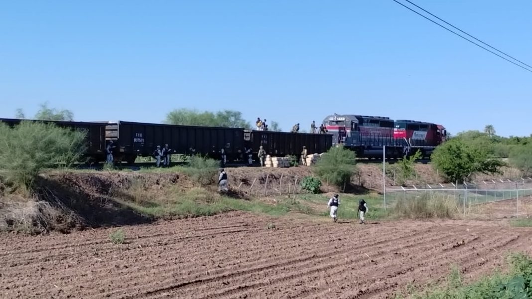 CULIACÁN, Sin.- Agentes de la Guardia Nacional aseguran al menos 30 paquetes de presunta mariguana en un vagón de tren a la altura de Estación Rosales, sindicatura de Culiacancito.
