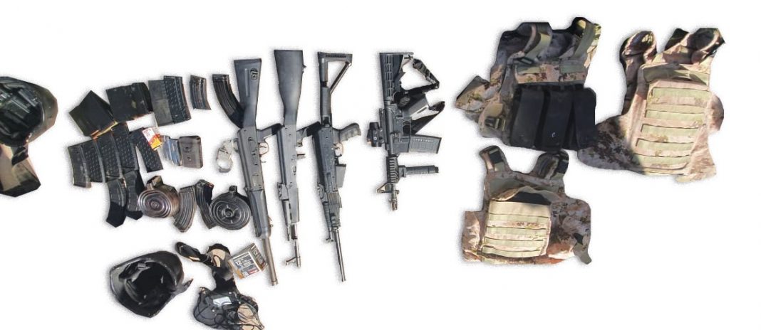 En la unidad, se hallaron cuatro armas de grueso calibre, de uso exclusivo del Ejército, una granada, además de cargadores, cartuchos de diferentes calibres, equipo de radiocomunicación, así como equipo táctico, entre ellos, chalecos, cascos y fornituras.