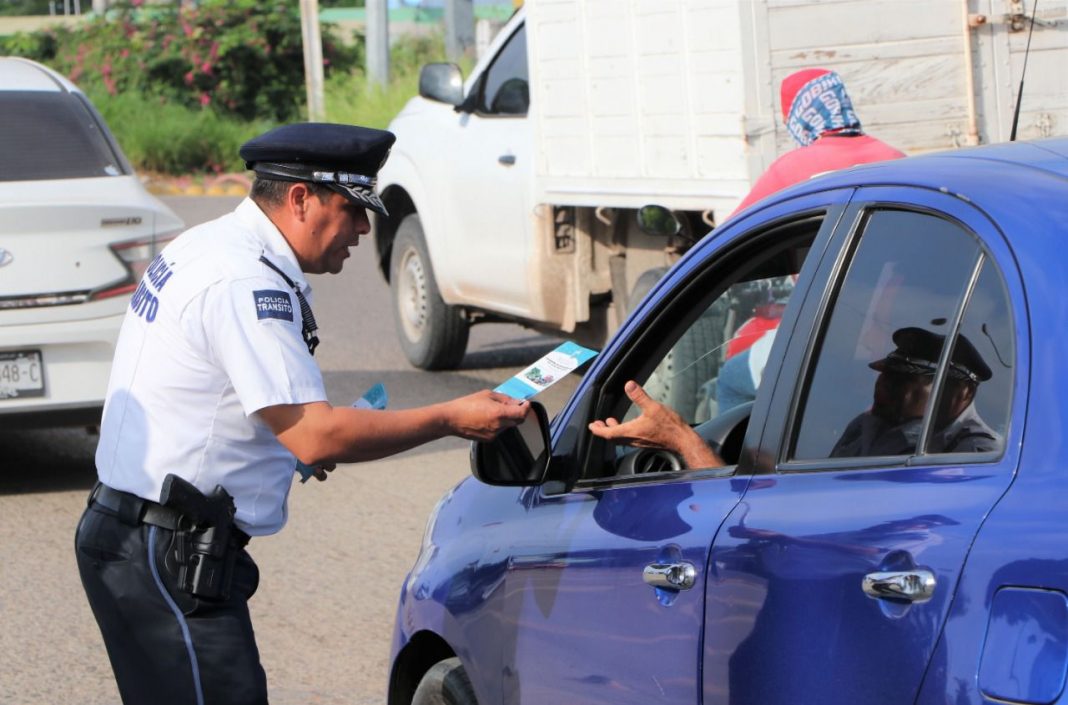 Este martes, el subdirector del Departamento de Tránsito, Jorge Samuel Alvarado Ilustre, acompañado de un grupo de agentes, acudió al cruce de vías de la avenida Santa Rosa, donde estuvieron entregando trípticos de la campaña de educación vial a los conductores, para que tomen sus precauciones al cruzar las vías del tren.