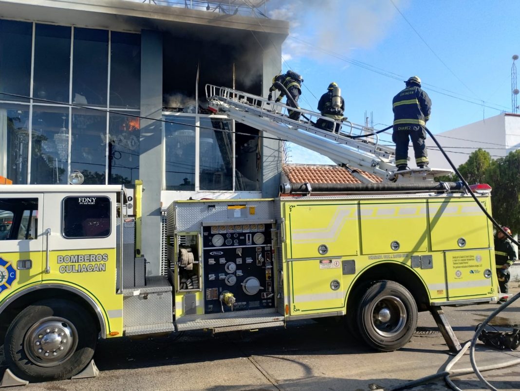 CULIACÁN, Sin.- La mañana de este lunes se registró un fuerte incendio en un negocio de lámparas y decoraciones de interiores ubicado sobre la avenida Xicoténcatl y calle Laguna de Yuriria de la colonia Las Quintas.