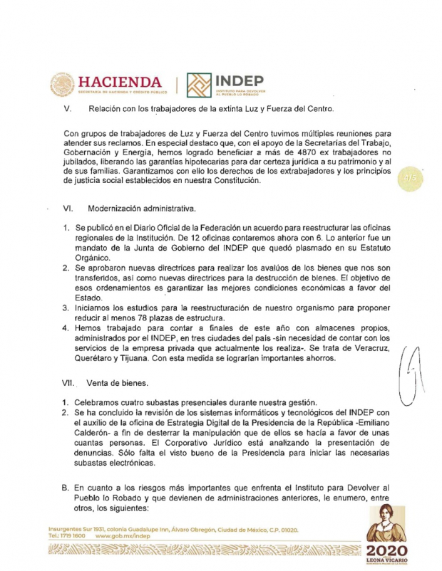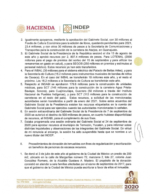 “El INDEP es tanto un cofre con recursos importantes, pero no inagotables, para que el gobierno federal realice su política social y prioritaria, así como un espacio institucional de graves retos”, indicó.