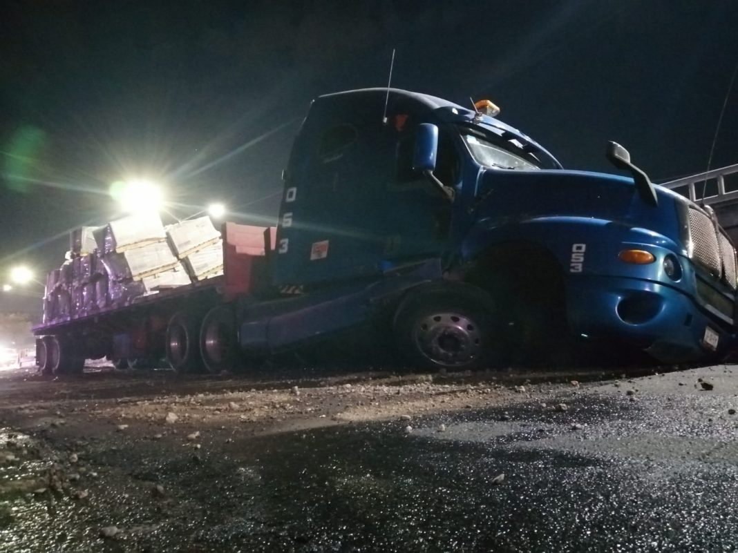 El accidente ocurrió poco antes de las 18:00 horas, por lo que el embotellamiento se prolongó más de lo estimado tras los daños materiales que presentó el vehículo de carga pesada.