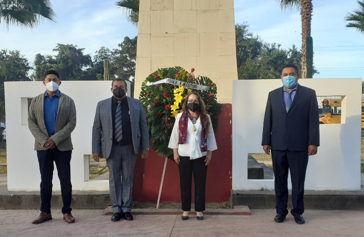 Sólo fueron colocadas tres ofrendas florales a nombre del poder Ejecutivo, Legislativo y Judicial, que estuvieron escoltada por el presidente municipal, Eliazar Gutiérrez y los regidores locales, además del secretario del Ayuntamiento, Jesús Ángel Reátiga García; la síndica Procuradora, Sandra Aurelia González Sánchez y el síndico municipal de San Pedro, Luis Alberto López Quevedo.