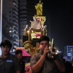 El carro destacaba por su color dorado y blanco, con detalles de diamantina que brillaban bajo la luz. Los caballos de mar y las máscaras doradas descansaban sobre enormes columnas, creando un efecto visual impresionante que la gente calificó con sus aplausos.