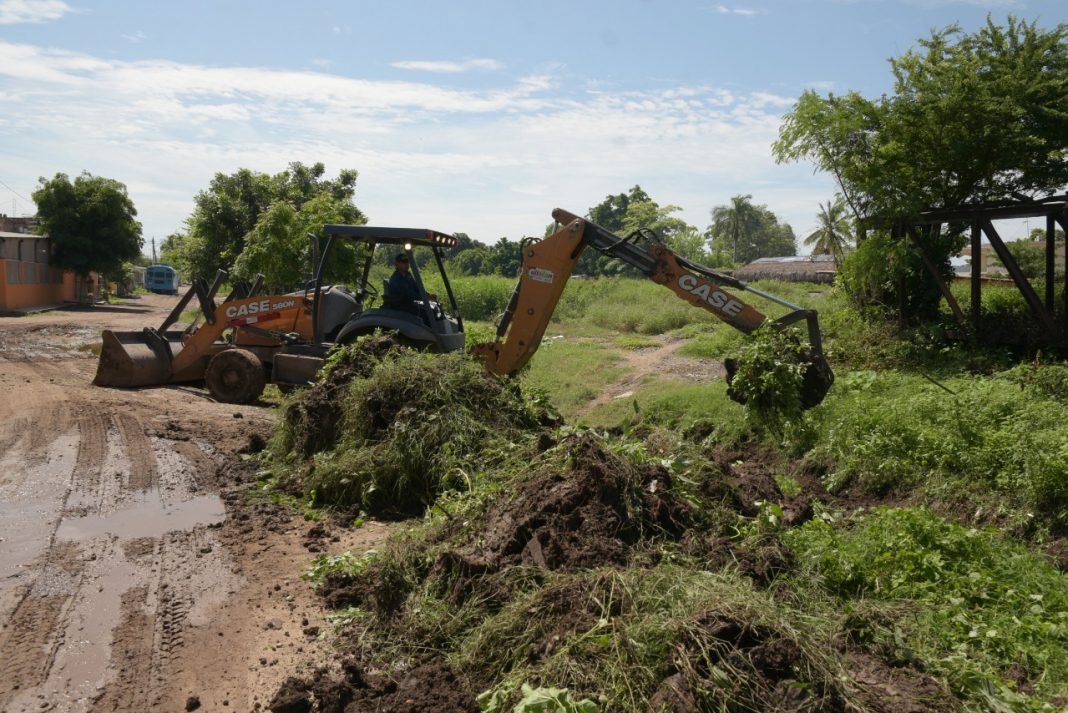 En esta zona el gobierno de Culiacán a través de la Secretaría de Obras y Servicios Públicos realiza el retiro de tierra y maleza sobre el afluente natural, esto a fin de que el sector desfogue el agua de las lluvias de forma natural y sin taponamientos.