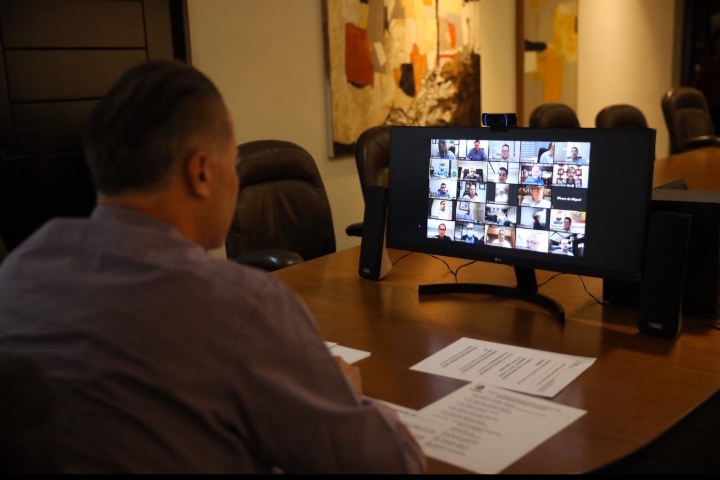 Desde su despacho en Palacio de Gobierno, el mandatario estatal se enlazó a través de una videoconferencia con diversos actores de la sociedad, representantes de sectores productivos, académicos y religiosos.