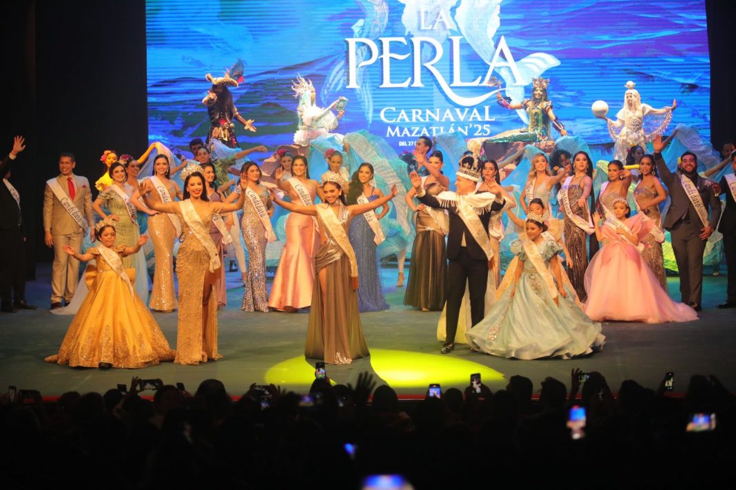 La presentación del tema y aspirantes a las coronas de la máxima fiesta porteña tuvo un final festivo con bailes y música sinaloense y la presencia en escena de los hombres, las mujeres y las niñas que competirán por conquistar los reinados del Carnaval Internacional Mazatlán 2025.