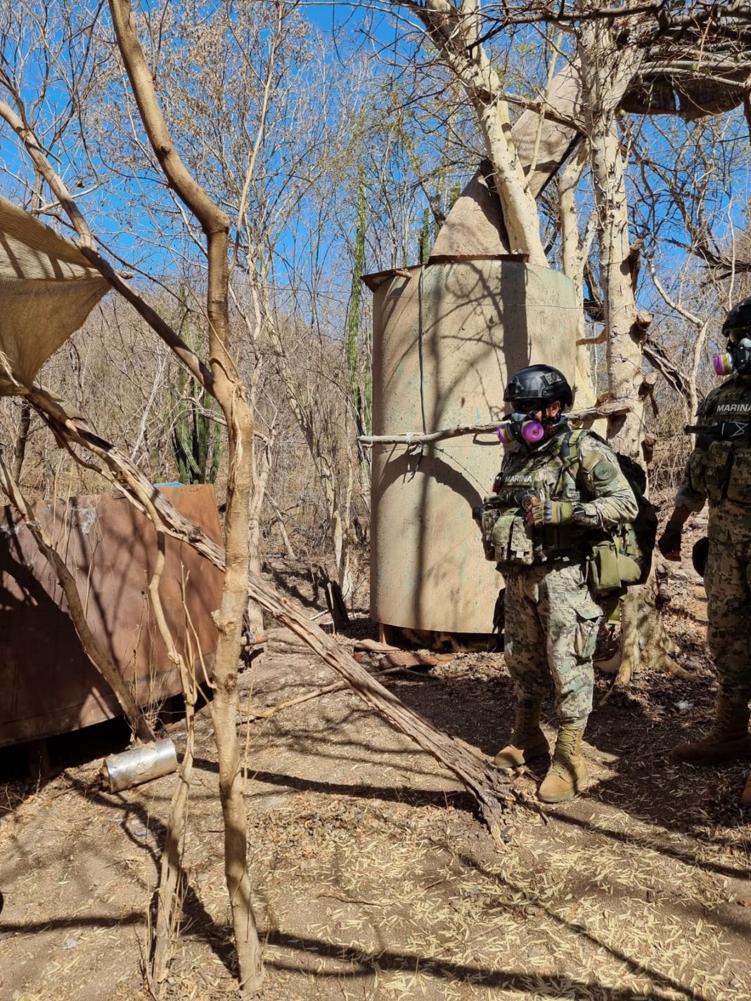 CULIACÁN, Sin.- La Secretaría de Marina a través de la Armada de México informa que, en días pasados, personal de esta Institución en coordinación con la Fiscalía General de la República y la Policía Federal Ministerial, localizaron e inhabilitaron cinco laboratorios clandestinos, en los poblados de Carboneras y La Higuerita.
