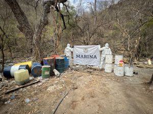 De esta manera, la Secretaría de Marina a través de la Armada de México, contribuye en la suma de esfuerzos para combatir las conductas delictivas, traducidas tanto en el establecimiento de laboratorios clandestinos, como en la elaboración de drogas sintéticas en nuestro país, debilitando con ello la producción y distribución de drogas por parte de grupos delictivos.