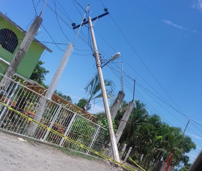 La fotografía que ilustra esta publicación pertenece a Cofradía de la Estancia II (Campo Vital), sindicatura de San Pedro, donde el reblandecimiento del terreno provocó la semicaída de un poste que mantiene sin luz a cuatro viviendas y todo el pueblo sin agua potable.