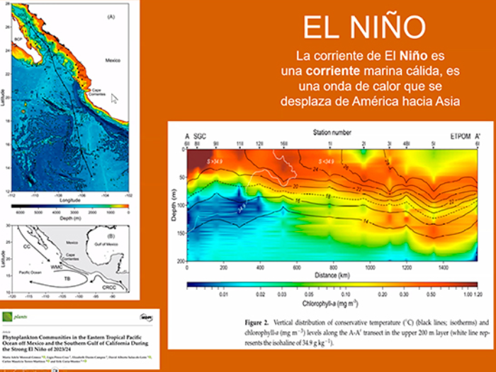 La científica manifestó que existen registros de El Niño desde el Cretácico, y en el Pacífico mexicano se cuenta con cuencas y agua rica en nutrientes, y pobres en oxígeno superficial donde ha sido posible estudiarlo mejor.