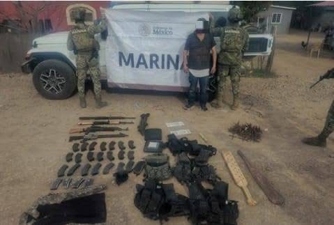 MAZATLÁN, Sin. – La Secretaría de Marina, a través de la Armada de México, por conducto de la Cuarta Región Naval, informa que en días pasados, personal naval detuvo a un presunto infractor de la ley y aseguró un vehículo, presunta droga, armas y equipo táctico en el estado de Sinaloa.